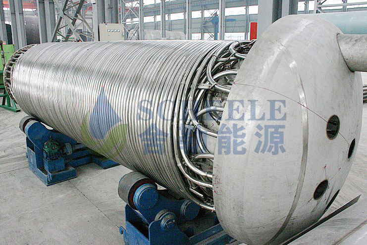水浴式气(汽)化器是以水为热媒的气化器,在大型 LNG 接收站中,开架式气化器、浸没燃烧式气化器以及管壳式气化器中以海水为热媒的气化器,均属于水浴式气(汽)化器;在 LNG卫星站中,水浴式气(汽)化器主要包括电加热式、燃料燃烧式等,它具有传热效率高,结构紧凑,占地面积小等优点。本文指的水浴式气(汽)化器主要是用于 LNG 卫星站的小型气化器,它应用于 LNG 卫星站的天然气加热,在土地资源有限的地方还可以代替空温式气化器作为主气化器。在以空温式气化器为主气化器的 LNG 气化站中,常常将BOG 气化器和水浴式气(汽)化器集成成撬,从而缩小了空间。水浴式气(汽)化器的主要功能是当空温式气化器及BOG 气化器出口温度不能满足管网需求时,将开启该装置,将空温式气化器及 BOG 气化器的天然气加热后送入下游装置。