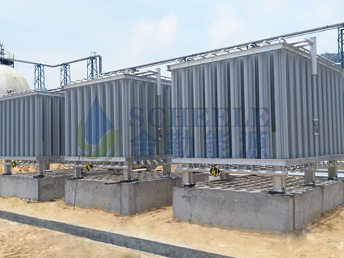 设有水箱、盘管及加热器,其原理:液化气由浸没在温水中的盘管内通过,吸收温水的热量后气化并过热,输入管网;温水的热能由电加热器提供,水温由温控控制在55℃-70℃,当水位过低时,能自动切断供电源,以免加热器干烧;当水温高于75℃能自动切断电流,以免温度过高。